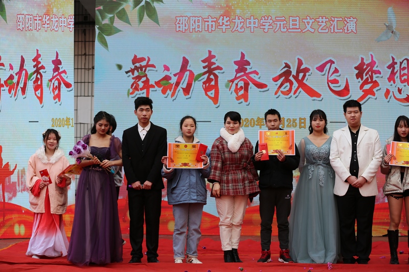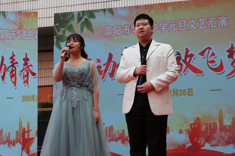 為豐富校園文化生活,充分展示學校教育成果,發(fā)展學生個性特長,提高廣大師生鑒賞、展示藝術(shù)美的能力,陶冶高尚的情操,進一步弘揚學校優(yōu)良的校風、教風和學風,加強校園精神文明建設,通過文娛活動,給學生提供展示自我的舞臺,2020年12月25日,為歡慶2021年元旦,邵陽市華龍中學全體師生在教學樓前舉行了“舞動青春,放飛夢想”大型文藝匯演活動。