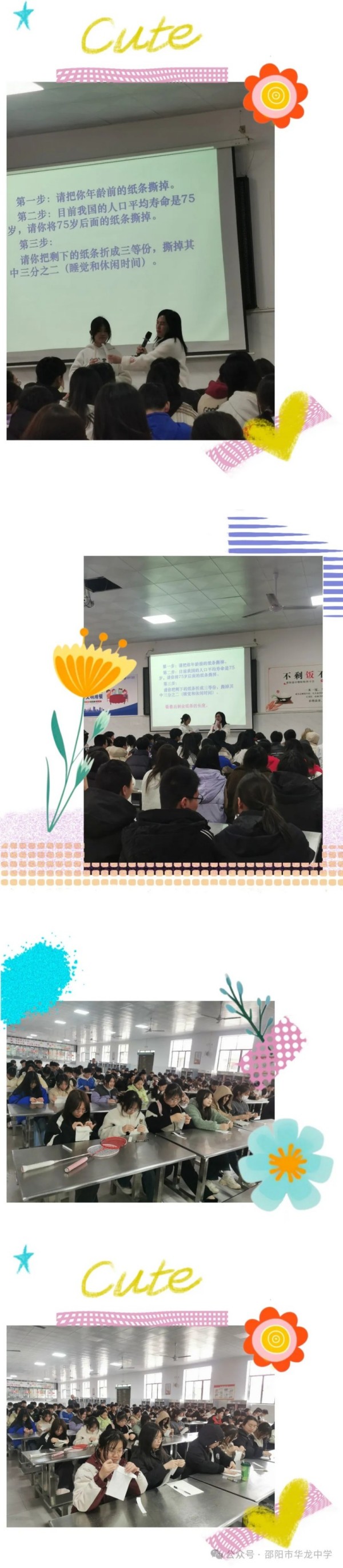 賀老師以猜謎語(yǔ)的形式引出時(shí)間是珍貴的,然后帶著學(xué)生一起做撕紙游戲,在做游戲的過(guò)程中領(lǐng)悟到生命是有限的,我們要合理利用時(shí)間才能讓生活如詩(shī)如畫(huà)。